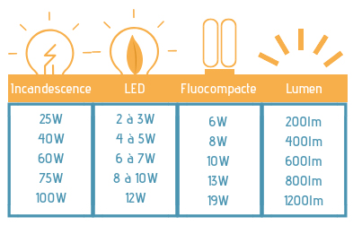 TABLEAU ÉQUIVALENCES AMPOULES